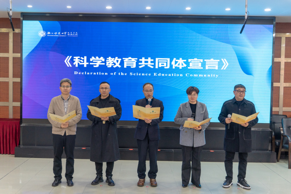 浙江省大中小学科学教育共同体代表共同宣读《科学教育共同体宣言》。浙师大融媒体中心 李丰成 摄