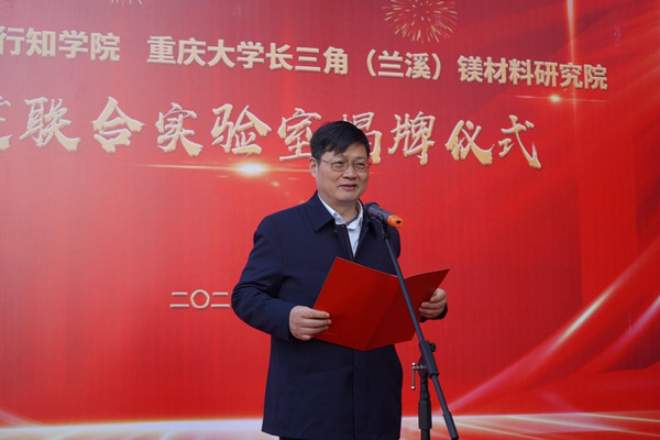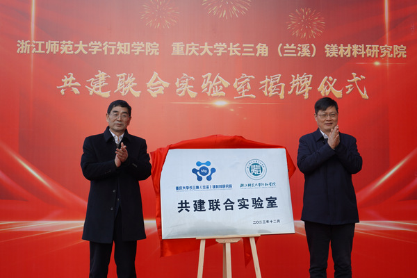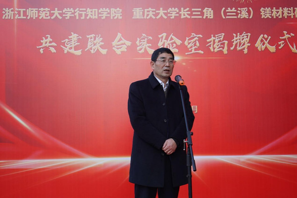 1月12日下午,浙江师范大学行知学院、重庆大学长三角(兰溪)镁材料研究院共建联合实验室揭牌仪式在学院10号实训楼隆重举行。国际镁学会主席、国家级顶尖人才、重庆市科协主席潘复生,浙江师范大学党委书记、行知学院董事长蒋云良,重庆大学材料科学与工程学院院长、重庆大学长三角(兰溪)镁材料研究院院长陈先华,兰溪市委副书记、市长朱俊华等领导出席仪式。兰溪市副市长徐政飞主持揭牌仪式。