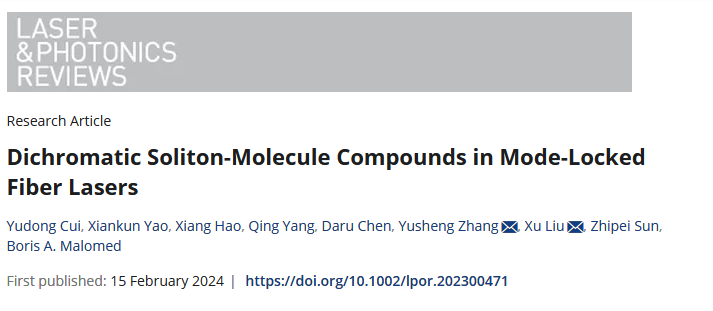 近日,杭州高等研究院激光感知团队与浙江大学极端光学技术与仪器全国重点实验室刘旭教授课题组合作在国际顶级光学期刊Laser & Photonics Reviews(IF = 11)上发表题为Dichromatic Soliton-Molecule Compounds in Mode-Locked Fiber Lasers的研究论文。