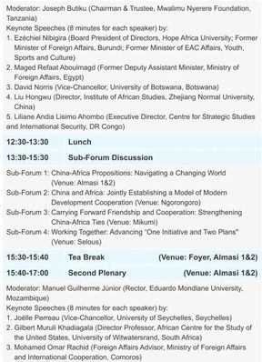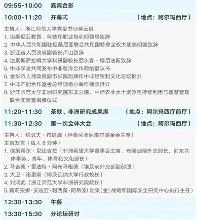 3月7日-9日,由中非合作论坛中方后续行动委员会秘书处主办,浙江师范大学、中华人民共和国驻坦桑尼亚联合共和国大使馆、浙江省人民政府外事办公室、金华市人民政府联合承办的“构建人类命运共同体的中非实践 中非智库论坛第十三届会议”将在坦桑尼亚达累斯萨拉姆隆重举行,新华通讯社非洲总分社、坦桑尼亚达累斯萨拉姆大学、中非产能合作基金将提供大力支持。驻坦国际组织代表、外交使节以及来自非洲49个国家、中国、国际组织的政府官员、智库领袖、著名学者、媒体代表、企业家等超过300人将线上线下出席本届盛会,交流观点、分享思想,为今年中非合作论坛建言献策。