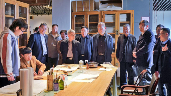 胡坚一行首先参观了中国契约文书博物馆,详细了解了馆内土地契约、鱼鳞图册、诉状文书、归户册等珍贵的民间文书,以及契约文书的保存状况和修复过程。