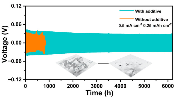 针对这一挑战,该工作通过引入双功能电解质添加剂丁内酰胺(BA),通过在 Zn 表面构建优先吸附层并改变 Zn2+ 的溶剂化结构,来确保均匀的离子传输。 实验结果、DFT计算和理论模拟表明,持续的水消耗和枝晶生长问题得到了有效解决,并实现了高度可逆的镀/剥锌。 凭借这种双功能添加剂,对称电池可在 0.5 mA cm-2 下提供 6200 小时、1 mA cm-2 下 3900 小时、2 mA cm-2 下 2000 小时和 10 mA cm-2 下 800 小时的长期稳定性。即使在 80 mA cm-2 的高电流密度下,对称电池也能稳定循环超过 1000 圈。 与基准电解液相比,BA 基电解液保留了优异的锌电镀/剥离性能,并提高了库仑效率。 组装的 Zn-V2O5 和 Zn-I2 全电池显示出增强的倍率性能和循环稳定性。