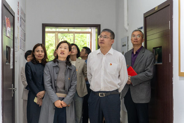 会前,傅关福一行实地考察了化学与材料科学学院全国样板党支部、全国高校“双带头人”教师党支部书记工作室。在工作室负责人、无机化学教师党支部书记童国秀教授的陪同下,傅关福一行深入了解了无机化学教师党支部发挥党建引领作用,赋能一流学科建设、团队建设推进、项目成果孵化、育人质量提升、社会服务推广等方面的经验和做法。