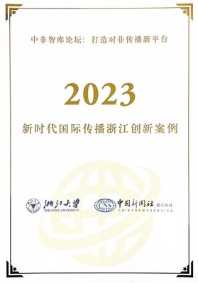 日前,浙江大学国际传播研究中心、中国新闻社浙江分社等联合主办的2023浙江国际传播经典案例发布会暨新时代国际传播对话活动在浙江湖州安吉举办,浙江师范大学非洲研究院选送的“中非智库论坛”获选2023年新时代国际传播浙江创新十大案例。