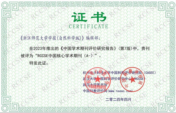 2024年4月,RCCSE《中国学术期刊评价研究报告》(第7版)正式发布,《浙江师范大学学报(自然科学版)》成功入选“RCCSE中国核心学术期刊(A-等级)”。
