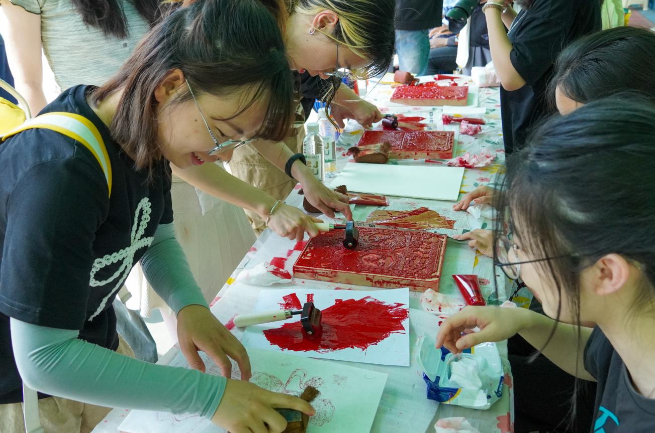 本届学生社区文化节设置了社区拔河赛、生活思政小课堂和安全教育等13项活动,旨在给学生提供展现青春风采、锤炼综合素质的舞台。舞狮表演、丝路舞曲等特色文化节目,燃起了现场的活跃氛围。各个展位的活动如火如荼,前来参加的师生络绎不绝。在社区拔河赛中,麻绳两端的师生使出浑身解数,双方均不甘示弱,中点的红绳不停左右飘动,围观的同学们更是激昂呐喊加油。“创意花漾相框DIY”“木版年画拓印”等活动引得同学们驻足体验,场面热闹非凡。