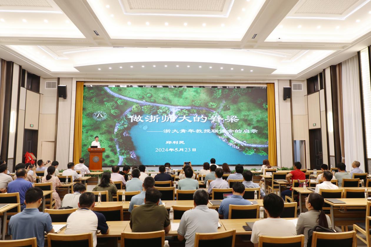 会后,邱利民向与会人员作题为《做浙师大的脊梁》的专题讲座。邱利民从愿景与使命、平台与活动、影响与作用三个方面展开,鼓励浙师大青年教授联谊会,强化内部交叉以形成合力,促进对外开放以争取资源。他强调,青年教授要以服务学校发展为主基调,以团结与创新为永恒主题,走遍所有院系,主动促进院系间认识、了解、信任、合作。同时,携手新媒体传播更多青年教授声音,共同打造联谊会“金字”招牌。