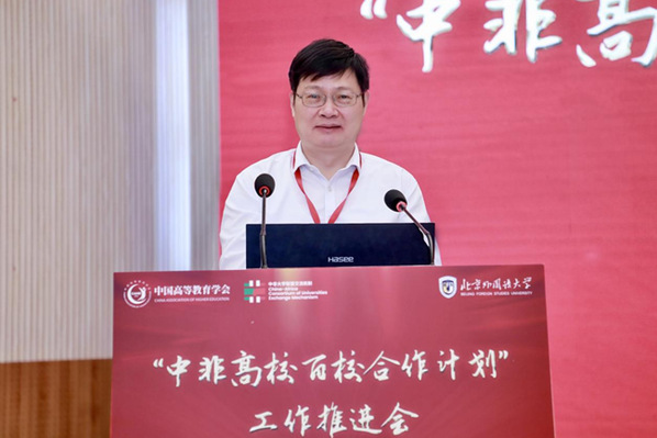 近日,“中非高校百校合作计划”工作推进会在北京外国语大学召开。教育部国际合作与交流司副司长贾鹏,中国高等教育学会副会长张大良,中国高等教育学会副秘书长郝清杰,中非大学联盟交流机制中方执行主任、北京外国语大学党委书记王定华,中非大学联盟交流机制中方执行副主任、浙江师范大学党委书记蒋云良出席会议。非洲大学协会秘书长奥卢索拉·奥耶沃勒作视频致辞。