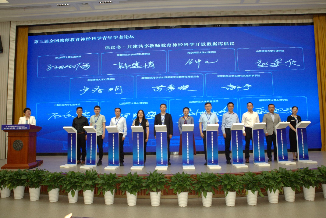 开幕式现场,相关高校心理学院负责人共同签署并发布了《共建共享教师教育神经科学开放数据库倡议》,启动了《教师教育神经科学》微专业联盟。同时,现场还举行了《共情与具身:教师职业道德教育的新路径》新书发布会。