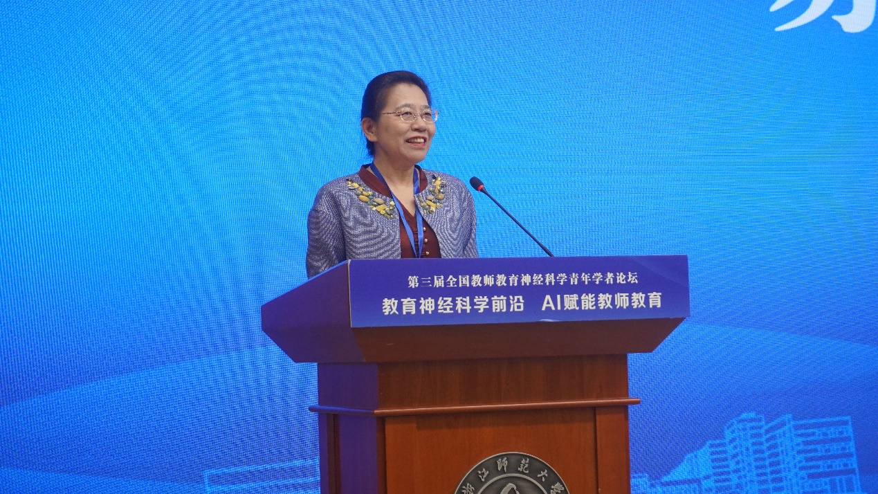 吕迎春在致辞中向前来参加本次论坛的专家学者表示热烈欢迎,并简要介绍了浙师大及浙师大心理学院发展情况。吕迎春指出,此次论坛不仅是科学研究的需要,也是师范院校培养创新型人才、推动高质量发展的需要,心理学院要用好教师教育神经科学交叉学科博士点的平台作用。她表示,希望各位专家学者通过智慧火花的碰撞,推动教师教育神经科学领域的发展,为教师教育提供新的视角和方法,为教师的专业成长和各级各类学校的师资队伍建设提供科学指导。