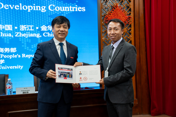 朱毅峰为学员颁发结业证书。图片来源:国际处