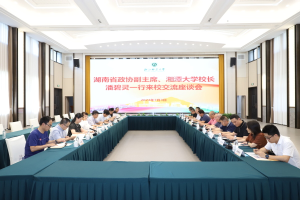 7月3日下午,湖南省政协副主席、湘潭大学校长潘碧灵一行来浙师大调研座谈。湖南省政协社法委一级巡视员刘强玉,浙师大党委副书记、副校长(主持行政工作)邱利民出席座谈会。