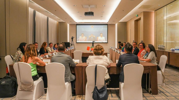 此次2024年“汉语桥”葡萄牙教育工作者访华团在华期间考察了杭州、衢州、金华等地。在杭州访问期间,省友协专职副会长邢绘东亲切会见了访华团。访华团还参访省教育厅,省教育厅国际处处长蓝晶晶向访华团详细介绍浙江教育对外开放情况,并交流讨论双方合作的潜在领域。
