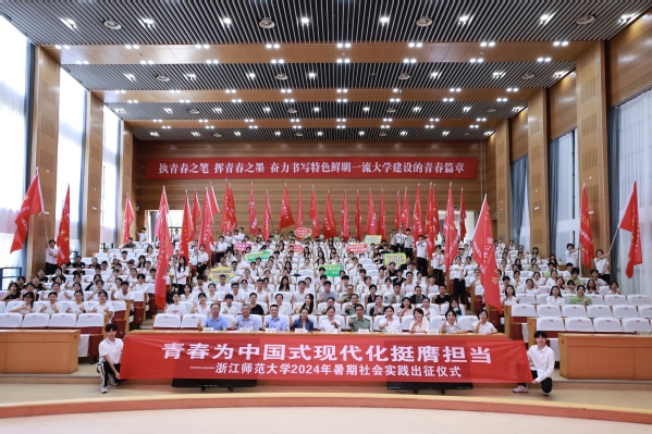 7月4日下午,浙江师范大学2024年暑期社会实践出征仪式在行政中心一楼报告厅举行。浙师大党委副书记吕迎春出席仪式并讲话。