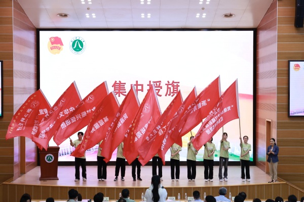 浙师大党委副书记吕迎春为社会实践团队授旗。图片来源 团委
