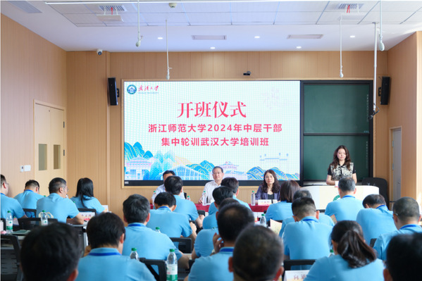 7月1日至4日,浙江师范大学2024年中层干部集中轮训在全国干部教育培训武汉大学基地举行。浙江师范大学党委副书记傅关福,党委委员、组织部、统战部部长王淑娉,全国干部教育培训武汉大学基地培训中心主任朱伟出席7月1日上午举行的开班仪式。