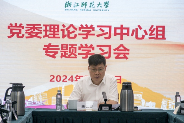 7月23日,浙江师范大学党委理论学习中心组举行专题学习会,传达学习贯彻党的二十届三中全会精神特别是习近平总书记在全会上所作的报告和重要讲话精神,贯彻落实省委常委会扩大会议要求。浙师大党委书记蒋云良主持会议并讲话。