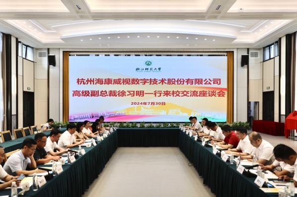 7月30日下午,杭州海康威视数字技术股份有限公司高级副总裁徐习明一行来浙江师范大学开展交流座谈,探索校企双方进一步深化战略合作新模式。海康威视高级副总裁徐习明,海康威视金华分公司总经理林志海,海康威视全国高教行业总监陈继龙,浙师大党委书记、全省重点实验室主任蒋云良出席座谈会,副校长张建珍主持。