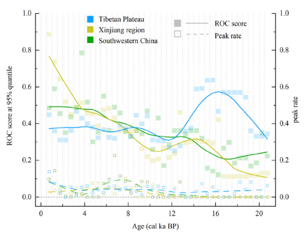 图2.青藏高原植被变率与新疆和西南地区的差异:Zhou BR, Xu DY, Chen HY, Liao MN, Li K*, Ni J*. 2024. Different sensitivity of postglacial vegetation to climate and human disturbance between Tibetan Plateau and its surrounding regions. Quaternary Science Review, 342: 108911. https://doi.org/10.1016/j.quascirev.2024.108911
