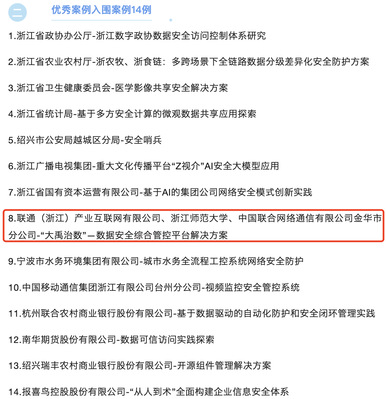 省委网信办组织的2024年浙江省网络安全优秀案例评选活动面向我省党政机关、事业单位、国有企业以及民营企业征集网络数据安全优秀案例,重点聚焦解决行业领域典型应用场景下网络安全难点痛点,要求申报单位申报项目具有良好的创新性、实践性、示范性,充分体现网络数据安全发展趋势。世界智慧城市大奖由全球智慧城市大会设立,每年评选一次,被誉为世界智慧城市领域的“奥斯卡”,奖项包括宜居和包容大奖、使能技术大奖等八大类别。浙江师范大学与联通(浙江)产业互联网有限公司、中国联通金华市分公司联合申报的“大禹治数”——数据安全综合管控平台解决方案,通过一平台服务、一屏幕掌控、一件事协同、一张网管控、一个库赋能,“五个一”的综合能力集成,形成协同有效的数据安全治理体系、常态化数据安全保障机制,助力数据安全治理水平飞跃发展。