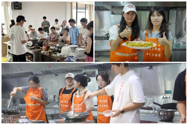 “劳动与生活实践”通识课共24学时,由后勤员工担任主讲教师,通过理论课和实践课,为同学们讲授饮食文化、烹饪技巧、衣物缝补、寝室收纳、果苗培育等生活知识和技能,培养学生日常劳动习惯,提升劳动素养。第一堂课由后勤服务中心餐饮服务部副主任沈浩良担任授课教师,他讲解了烹饪技能理论知识和饮食文化、制止餐饮浪费相关知识,从刀工学习、菜品搭配、家常菜烹饪开展示范教学。随后,同学们系上围裙,三人一组开始烹饪实践,老师一边指导一边讲解每道菜的要领、技巧,同学们的“作品”陆续完成,课堂气氛热烈。同学们还邀请了室友前来品尝自己的劳动成果,有的同学则将作品打包带回分享,更有同学直呼“这是全世界最好的通识课”。
