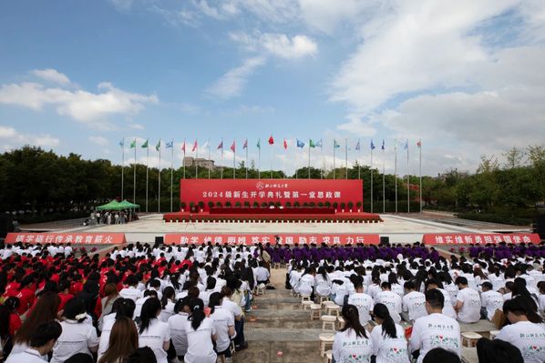 9月16日,浙江师范大学党委书记蒋云良以《青春为中国式现代化挺膺担当》为题,为9398名2024级本科生和硕士、博士研究生讲授第一堂思政课。