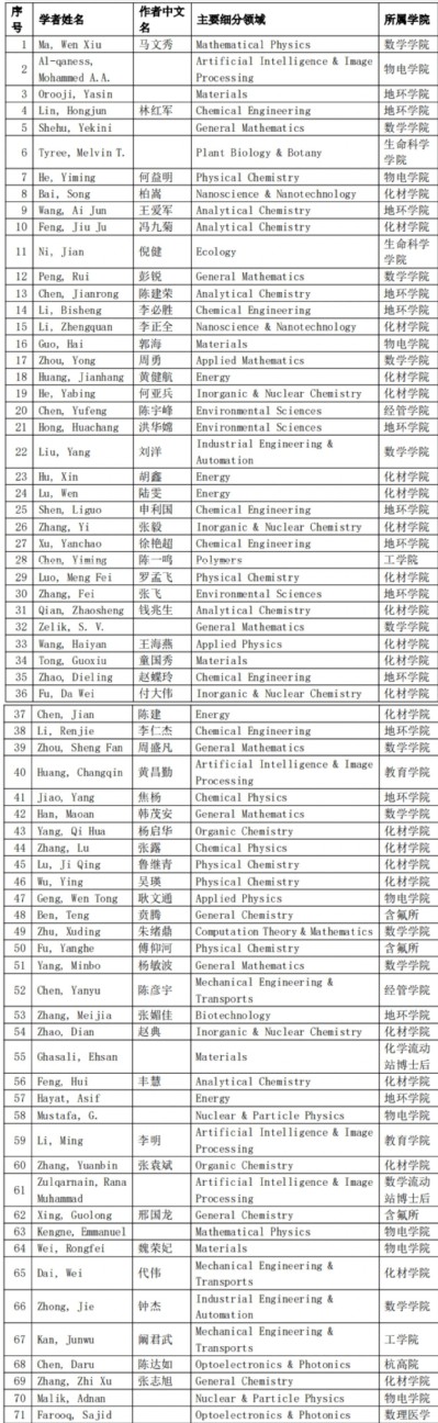 浙师大入选全球前2%“终身科学影响力榜单”学者名单