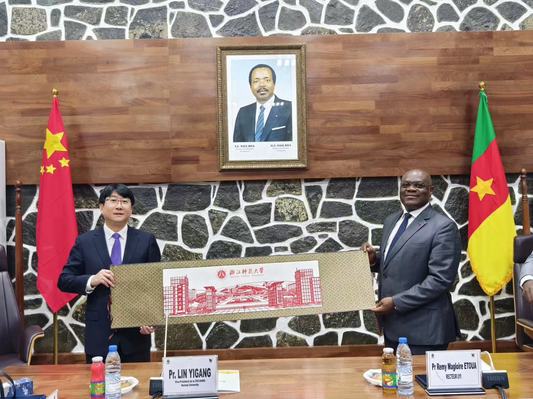 在喀麦隆雅温得第一大学访问期间,林一钢与校长雷米·马格洛伊尔·埃图瓦等举行座谈,双方回顾了两校十余年来在人才培养、联合科研等方面开展的密切交流与合作,希望两校在学术交流、共建实训基地等方面进一步深化合作。