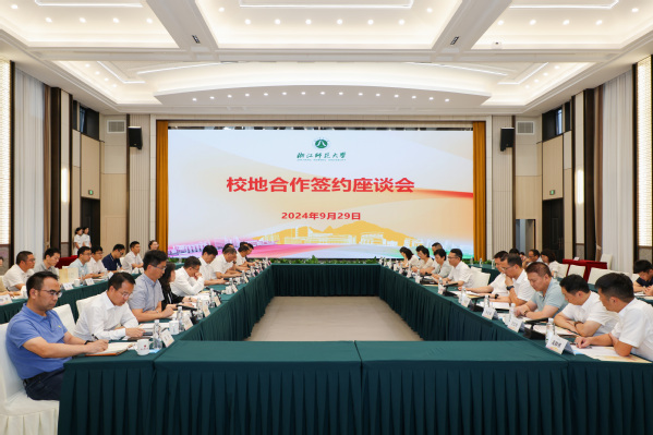 9月29日下午,金华市委常委、义乌市委书记王健,金华市副市长、义乌市委副书记、市长叶帮锐一行来浙江师范大学开展交流座谈,签署全面深化校地战略合作协议,共商高质量发展未来。