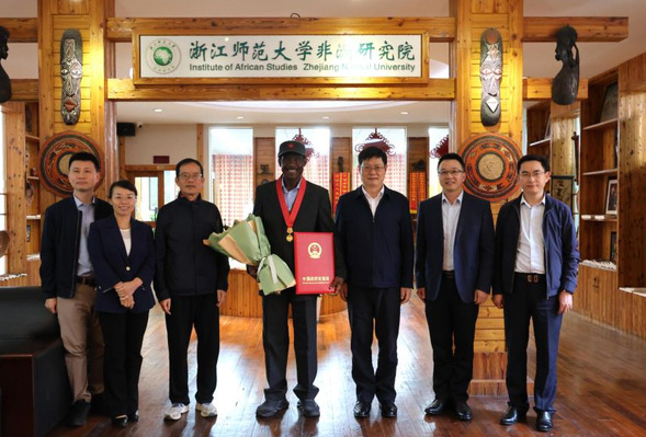 “在这里我收获了大家的友谊,也拓展了自己的认知,浙江师范大学是一所富有包容性和理解力的国际化大学,在这里,我感受到家的温暖”。约罗从儿时学习汉语的经历谈起,深情回顾了他与中国结缘,亲身见证中非、中马友好关系发展的难忘经历。约罗表示,十分感谢浙师大各级领导以及非洲研究院领导和同事一直以来对自己工作的支持和肯定。刘鸿武教授对待非洲学者犹如兄弟般亲切,在他的帮助和支持下,我得以有机会深入中国的农村、企业调研,深刻了解中国基层治理的模式和经验。约罗强调,此次获奖不仅是一份荣誉,更激励他继续充分发挥自己的专业优势,讲好中非友好交往故事,为中非携手推进现代化贡献力量。