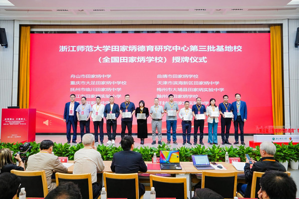 开幕式上,与会人员集体观看了浙师大田家炳德育研究中心成立五周年庆祝视频,共同回顾、梳理、总结了五年来所取得的成绩与成果。戴大为、袁振国还为浙师大田家炳德育研究中心第三批基地校进行授牌,11所田家炳学校将与中心建立长期合作关系。