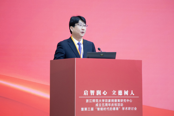 主旨演讲环节上,中国人民大学伦理学与道德建设研究中心主任、山西大学特聘教授曹刚,南京师范大学道德教育研究所所长冯建军,浙师大田家炳德育研究中心德育理论研究所所长、社科处处长冯昊青,分别围绕“自我伦理:灵魂工程的建筑学”“智能时代'人机协同'中的德育教师:挑战与应对”“智能时代我们如何思考德育”等主题作了报告。