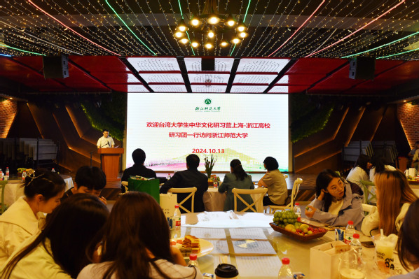 10月13日上午,来自台湾世新大学、体育运动大学、淡江大学、中国文化大学、元智大学的32名台湾青年学生组成的“台湾大学生中华文化研习营”一行参访浙江师范大学,并与师生交流座谈。海协会联络部副主任李园勇、浙江师范大学党委副书记吕迎春、台湾世新大学副校长李功勤等出席交流会。