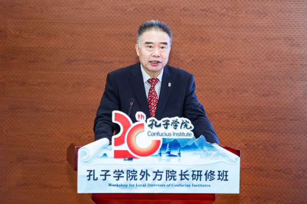 赵灵山向完成研修的孔子学院外方院长们表示祝贺,并对浙江师范大学的精心筹备表达感谢。赵灵山指出,此次外方院长来华研修,对进一步拉近各孔子学院院长彼此间的距离,推动基金会、中外方机构深化互信合作,着力构建孔院发展良好生态圈具有重要意义。他强调,孔子学院20年发展过程中,秉持“从语言入手、用文化交融,促民心相通”理念,其发展需要中外方院长、中外方合作机构的共同配合,也需要社会各界友好人士的鼎力支持。基金会将与各外方院校、中方院校一道,深耕孔子学院发展,共筑孔子学院良好生态圈。