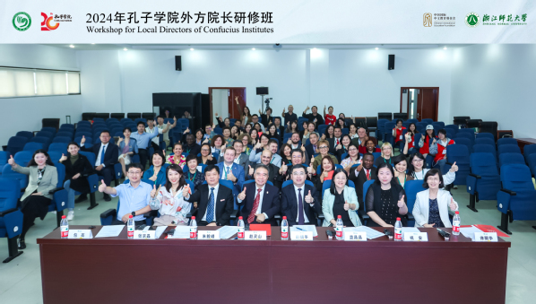 朱毅峰感谢中国国际中文教育基金会、浙江省教育厅对浙江师范大学国际中文教育与孔子学院工作的大力支持。他指出,这次研修是外方院长感知中国、读懂中国的9天,是拓展视野、提升能力的9天,是加深友谊、增进互信的9天。孔子学院是一扇窗、一座桥、一个家,是所有国际中文教育从业者们共同的家。希望院长们能与中方进一步加强合作,为推动语言学习、文化交流、民心相通和文明互鉴作出更大贡献。