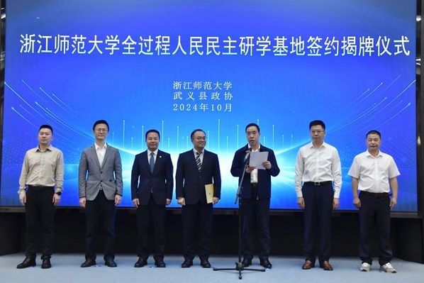 仪式上,双方签署了合作协议,并为浙江师范大学全过程人民民主研学基地揭牌。该研学基地的建立旨在更好地培养“知华友华”国际学生,增进国际友人、港澳台侨胞对中国全过程人民民主的理解,以及沉浸式体验武义县政协在基层协商民主方面的实践和探索。