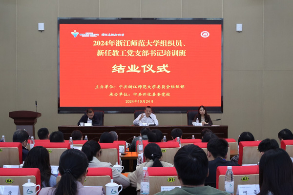10月22日-24日,浙江师范大学组织68名组织员、新任教工党支部书记赴中共开化县委党校开展专题培训。浙江师范大学党委副书记傅关福,中共开化县委党校常务副校长方亮,浙江师范大学党委委员、组织部、统战部部长王淑娉出席10月24日下午举行的结业仪式。