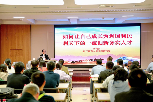 11月12日晚,“青年教授·尖峰论坛”在浙江师范大学工会多功能厅举行。浙江师范大学非洲研究院创始院长刘鸿武教授应邀作“努力让自己成长为利国利民利天下的一流创新务实人才”的主题讲座。浙江师范大学副校长、青年教授联谊会会长李盛主持。