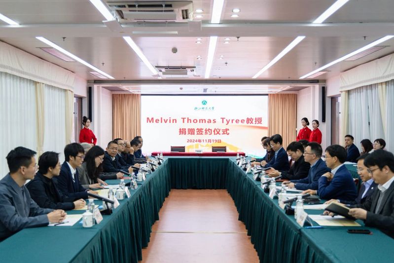 蒋云良代表学校对Tyree教授向浙师大捐赠135万元善款表示感谢,并介绍了浙师大和生命科学学院近年来的发展情况。蒋云良表示,当前浙师大正处于高质量发展的关键时期,Tyree教授的捐赠善举必将进一步推进浙师大的教育事业发展。我们将更加主动承担“服务浙江教师教育、服务区域经济社会发展、服务国家战略举措”的使命担当,在建设教育强国的新征程中找准方位、把牢定位,加快建设特色鲜明的一流大学。