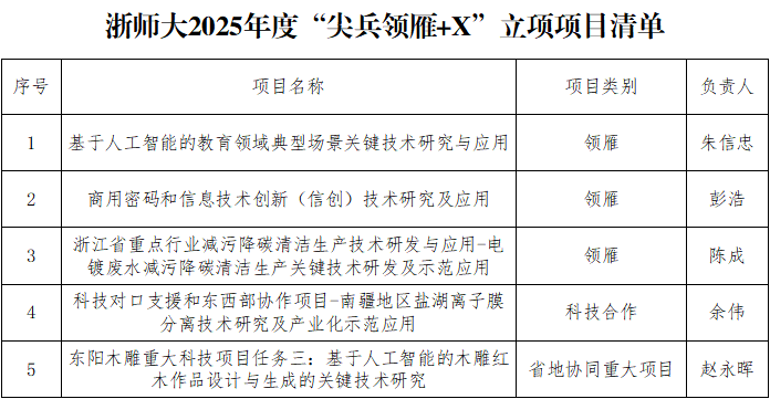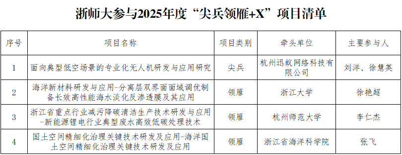 近日,浙江省科学技术厅2025年度“尖兵”“领雁”研发攻关计划项目立项公示结束,浙师大牵头的4个项目、1个项目任务,参与的4个项目获批上榜,立项数同比去年翻了一番。