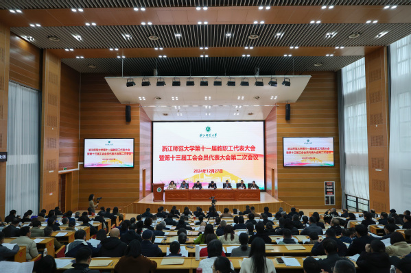 12月27日下午,浙江师范大学第十一届教代会暨第十三届工代会第二次会议在行政中心报告厅举行。浙师大党委书记蒋云良发表讲话,校长邱利民作学校工作报告,党委副书记傅关福主持会议。