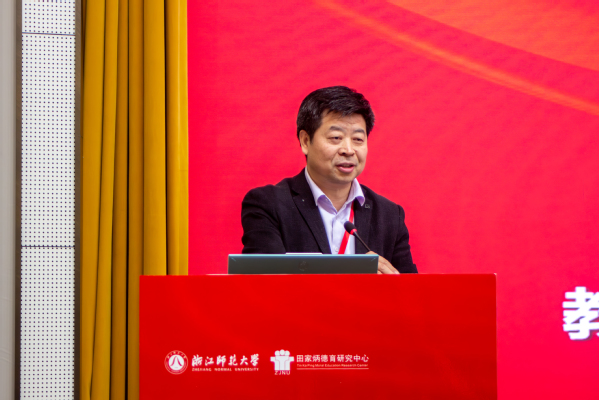 全国德育学术委员会理事长、曲阜师范大学原党委书记戚万学作主旨报告。浙师大融媒体中心 孙古宇 摄