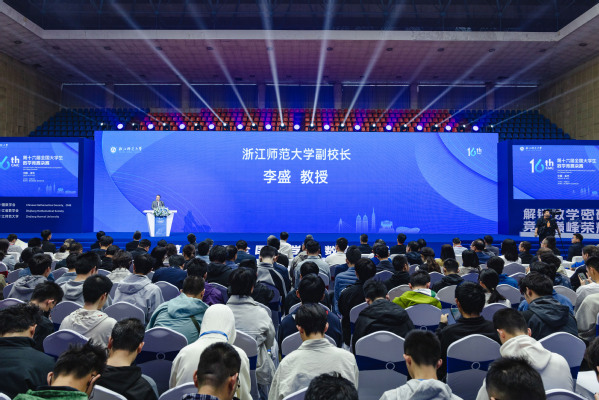 4月11日至13日,第十六届全国大学生数学竞赛决赛在浙江师范大学举行。中国科学院院士、中国数学会理事长席南华,中国科学院院士、浙江省数学会理事长包刚,中国数学会副理事长兼秘书长史宇光,中国数学会青年工作与大学生数学竞赛委员会主任吴臻,浙江省教育厅高教处二级巡视员吕华,浙江师范大学副校长李盛出席4月13日上午举行的颁奖典礼并致辞。全国大学生数学竞赛工作组、赛区负责人、带队教师和获奖学生代表,浙师大有关部门和学院负责人等1500余人现场参加颁奖典礼。
