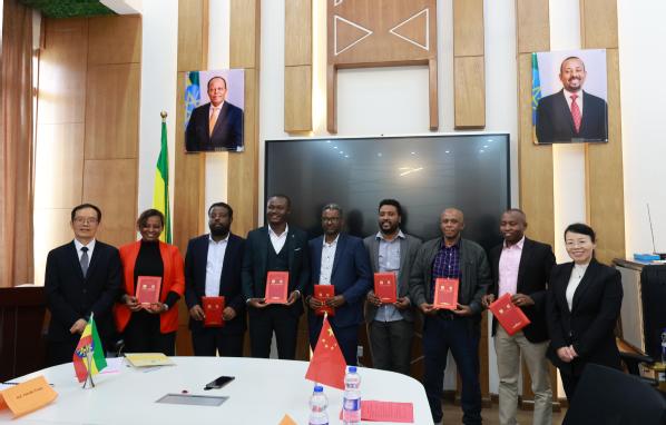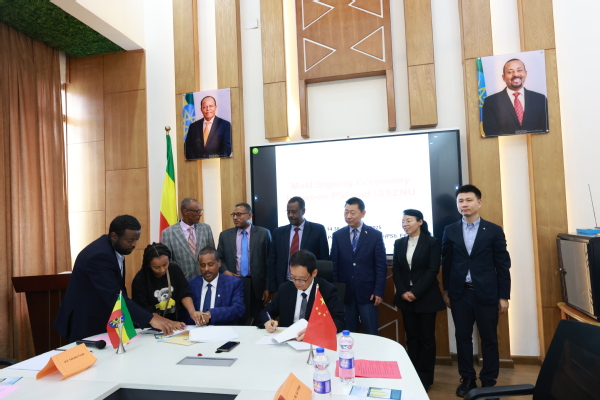 在孙明晰公使见证下,浙江师范大学非洲研究院与埃塞俄比亚政策研究所签署合作协议,为双方深化合作奠定基础。