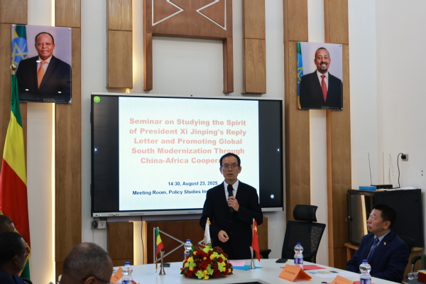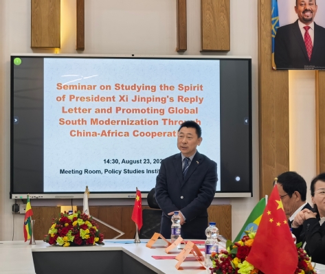 当地时间2025年8月23日,由浙江师范大学非洲研究院和埃塞俄比亚政策研究所共同举办的“学习习近平主席复信精神 以中非合作推进全球南方现代化”研讨会在埃塞俄比亚首都亚的斯亚贝巴举行,埃塞俄比亚政策研究所所长费卡度·采加、中国驻埃塞俄比亚使馆公使孙明晰、浙江师范大学非洲研究院院长刘鸿武出席会议并致辞,来自中国、埃塞、加纳、肯尼亚、马里、南苏丹等多个国家的30余名专家学者参与学习研讨。本次研讨会由埃塞俄比亚政策研究所传播与出版顾问巴卢·德米西主持。