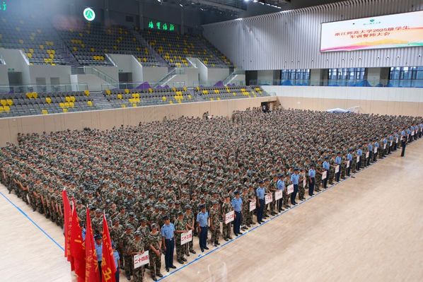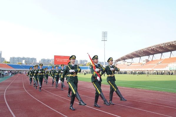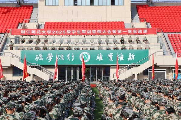 浙江师范大学军训工作领导小组成员、2025级学生军训承训部队的全体教官和浙师大退役大学生助教、各学院军训工作领导小组成员、2025级全体参训学生参加誓师大会。