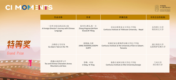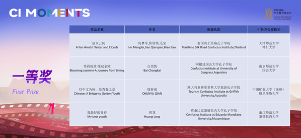 “最·孔院”全球短视频活动特等奖及一等奖的获奖名单。图片来源 国际处