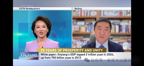 9月25日,浙江师范大学边疆研究院副院长王江应中国国际电视台(CGTN)《中国24》(“China 24”)栏目邀请,以直播连线方式接受访谈,就新疆维吾尔自治区成立70周年与新时代党的治疆方面进行分析。