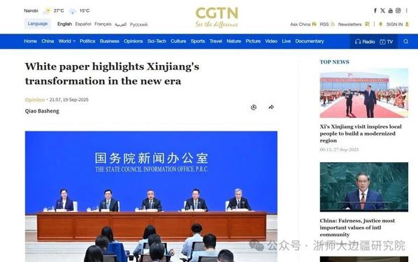 同日,浙江师范大学边疆研究院乔巴生教授在中国国际电视台(CGTN)官方网站发表英文时事评论员文章“White paper highlights Xinjiang's transformation in the new era”。