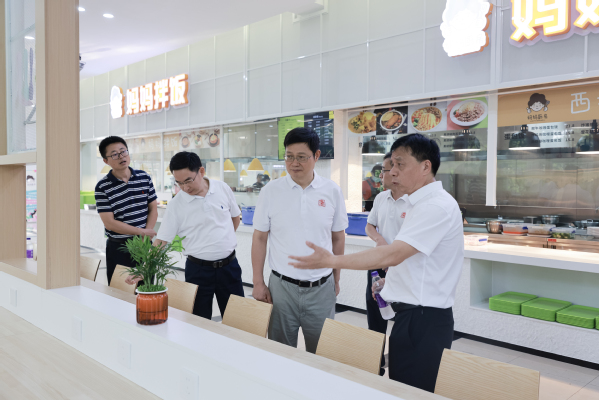 检查过程中,蒋云良一行查看了“妈妈厨房”的环境布置,现场体验了“浙师图书馆·杏园书驿”的借还书流程。检查结束后,蒋云良一行还在“妈妈厨房”与同学们一起就餐,认真倾听了学生对食堂菜品口味、营养搭配、环境卫生及学习生活等方面的意见和建议。